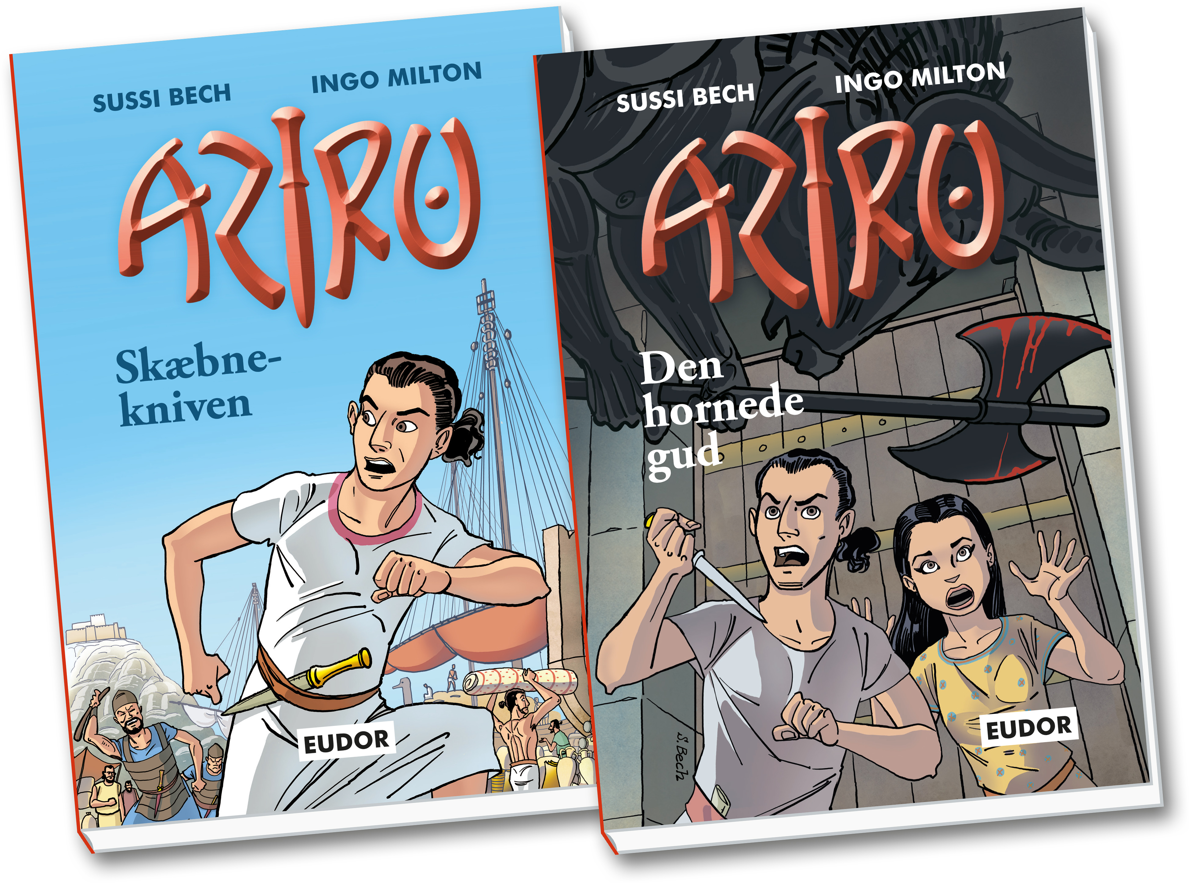 Sussi Bech & Ingo Milton: Aziru 1 + 2 (Skæbnekniven) (Den hornede gud), 80 + 72 sider, 2016, Eudor.
